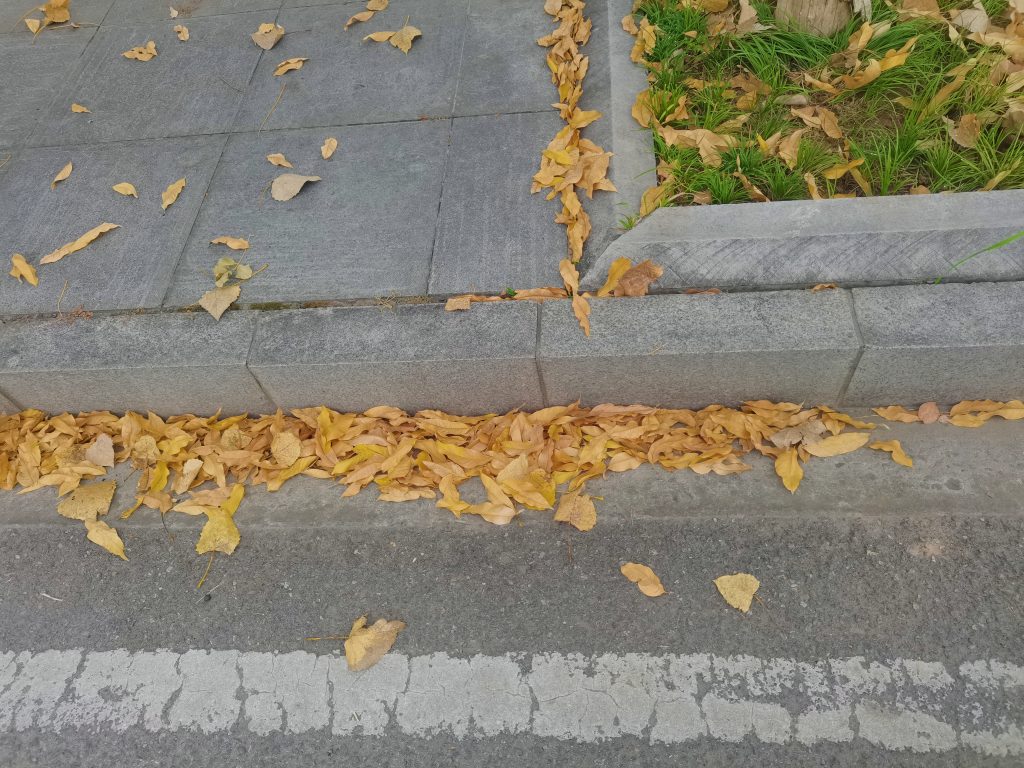 边骑行,边欣赏道路两旁的风景与建筑。见路边有银黄的银杏树、路牌、花骨朵、落叶等等有意思的东西,便停下来拍照记录,走走停停,十分悠闲。