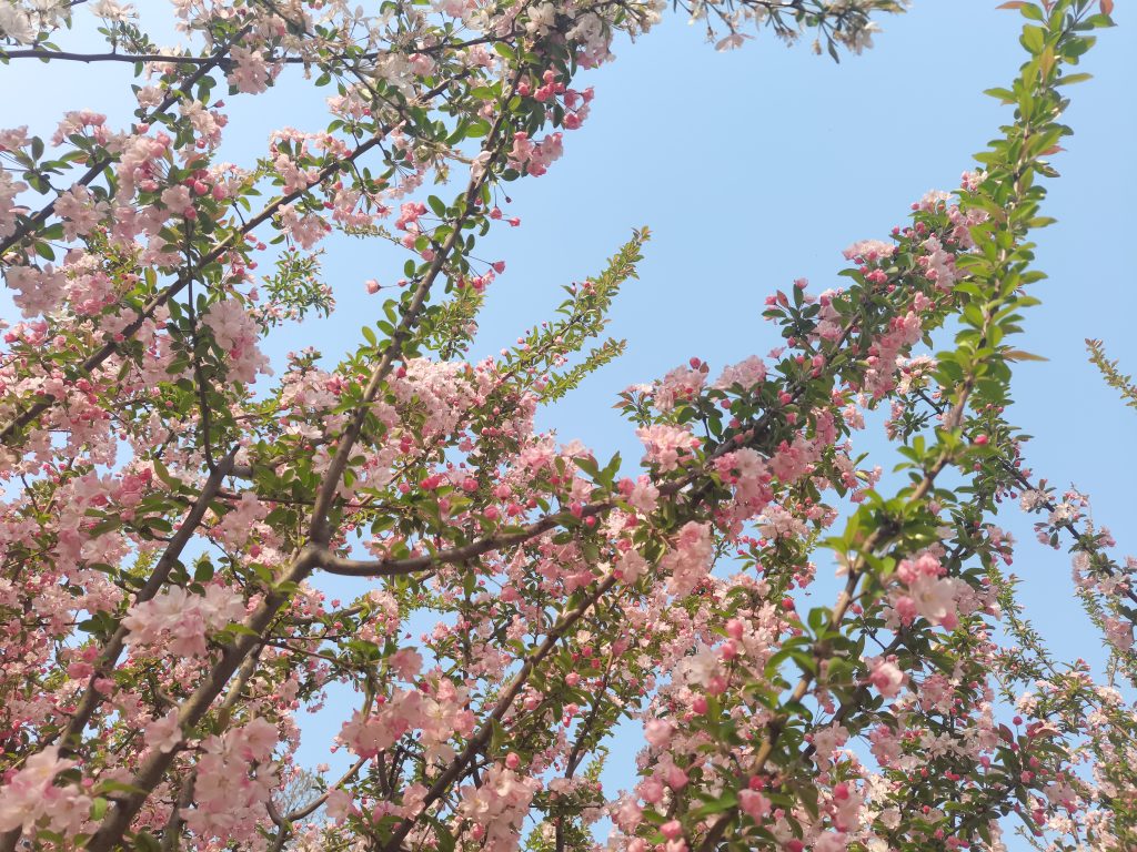 这是在今年春天拍下的海棠,十分喜欢,还拿此作为微信朋友圈背景图。枝条延伸向蓝天,向希望迈进。