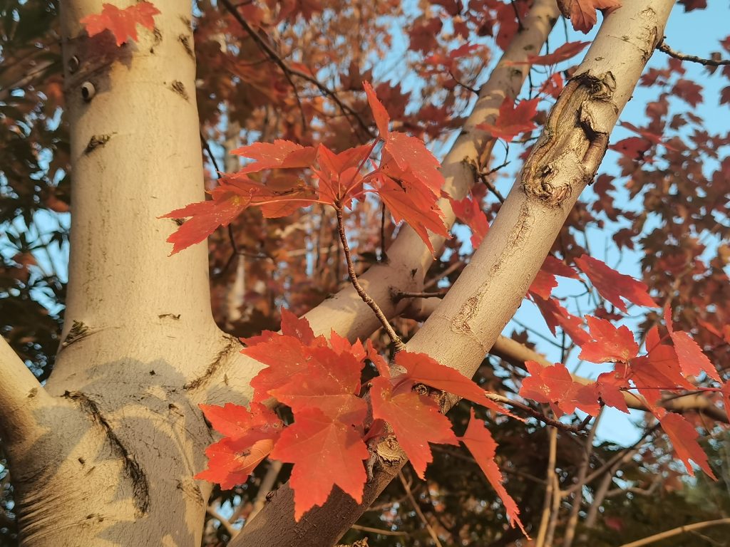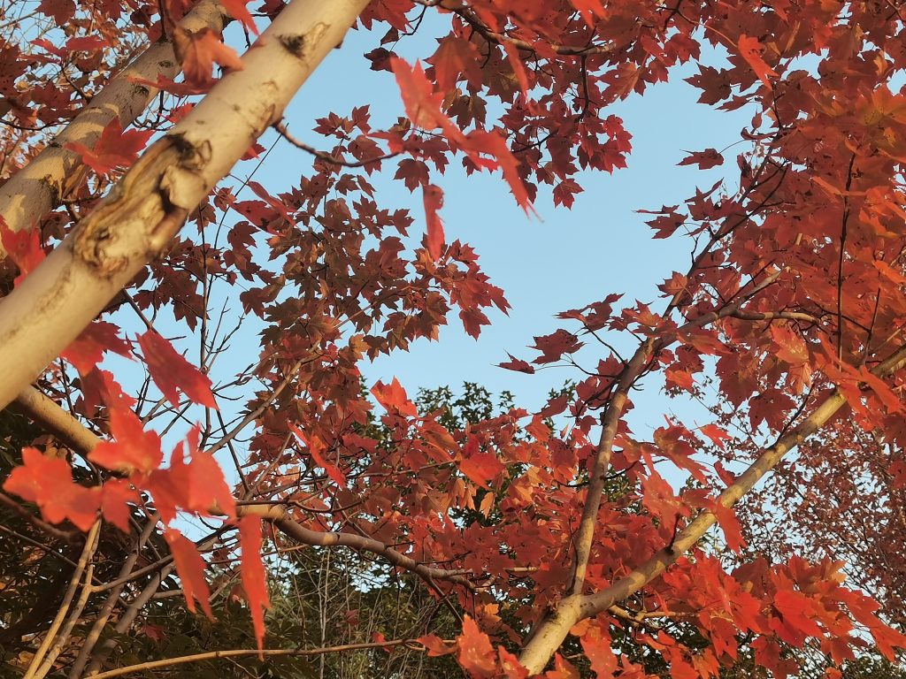 枫树的红,不同于秋日寻常的黄,十分独特,赏心悦目。