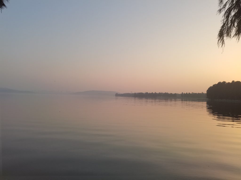 与蒜香公主、猫猫大王一同前往东湖,看枫叶,赏秋景。见东湖被一层薄雾遮盖,好有意境,诗兴大发,蒜香公主吟诗一首,与所见之景十分契合。